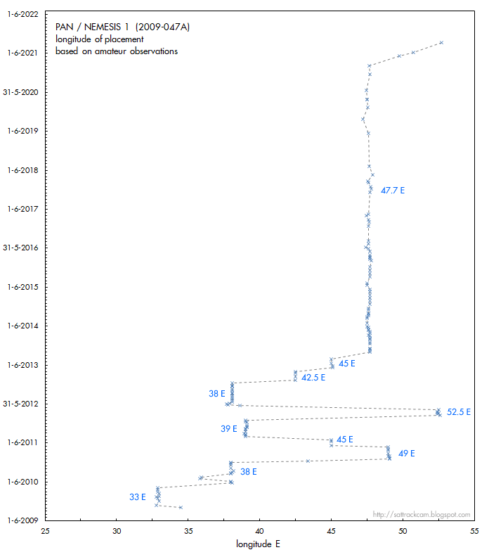 In top of this post is a frame-stack from the footage. Below it is a map I prepared showing the northern part of the sky as seen from the camera station in Puerto Rico, with the blue line representing the sky trajectory expected for this Trident launch for an assumed (but see below) apogee altitude of 2200 km. They compare well (note: the video stack shows a part of the trajectory only, up to about azimuth 30 degrees, while the sky map shows the full trajectory).