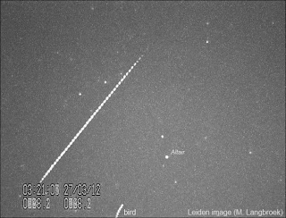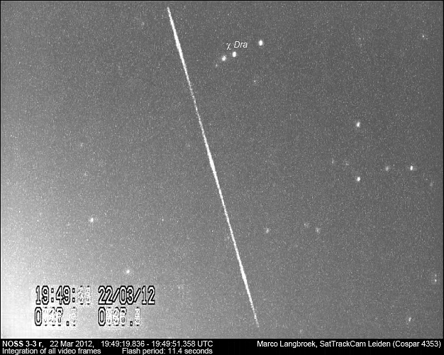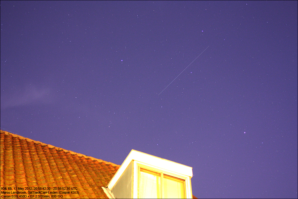 IGS 1B (2003-009B) which is about to reenter, uncontrolled, into the atmosphere soon. The above footage of the object was shot by me last April 13 and 14 and shows two passes over Leiden.