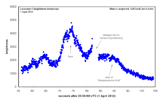 Russell Eberst successfully recovered it a day later on the evening of April 3. Since then, I observed it on April 13, 14 and 22 (see video footage above of the April 13 and 14 passes) and other amateurs have observed it as well.