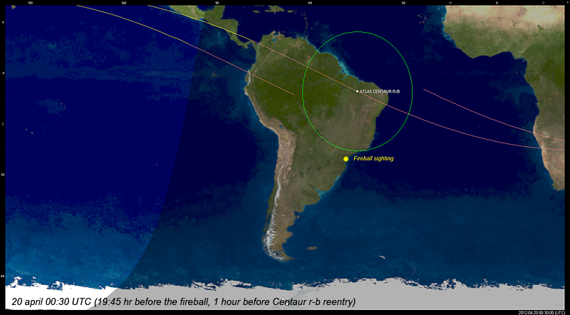 Below is a 35-second integration of video frames from the April 13 video (upper right are tail stars of the Big Dipper):