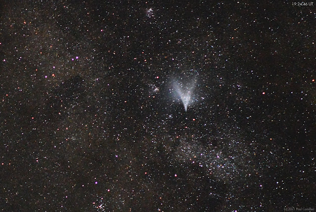 My pre-launch estimate for the orbit appears to have a quite reasonable agreement with the eventual orbits for these objects (the green arrow and object in the images below indicates my pre-launch estimate. the plot is for 1 July 6:35 UT, about 16 hours after launch):
