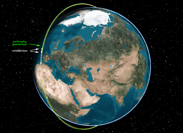 The 3-hour launch window runs from 13:00-16:00 UT [edit: launch eventually was at 14:47 UT]. According to Virgin Orbit, the orbit aimed for is a 60-degree inclined circular orbit at ~500 km altitude. [edit] An infographic by the Royal Dutch Air Force mentions an orbital inclination of 60.7 degrees.